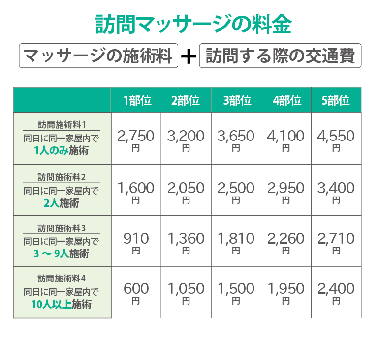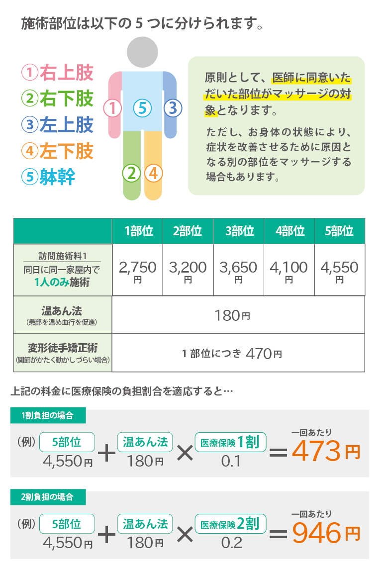 ※訪問マッサージの費用は、厚生労働省により定められており、全国一律料金になります。